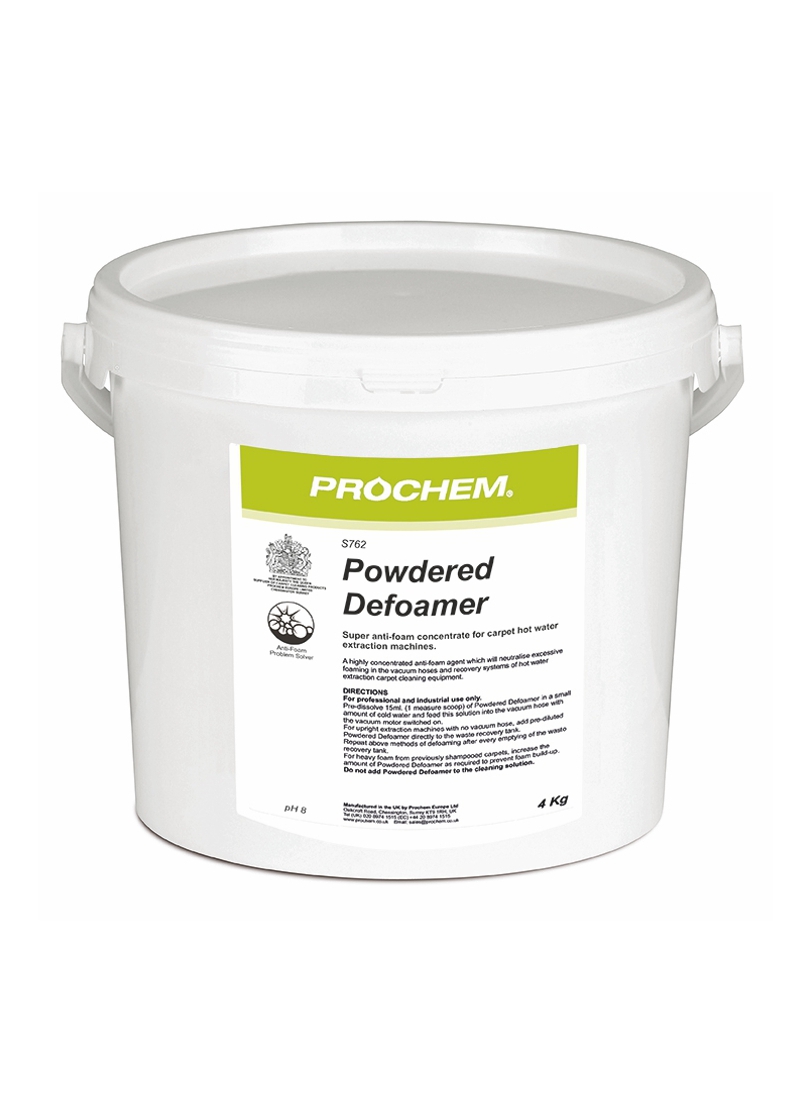 The Prochem Powdered Defoamer is an economical and highly effective powdered defoaming agent, specifically designed to control and reduce excessive foam build-up during extraction cleaning processes.